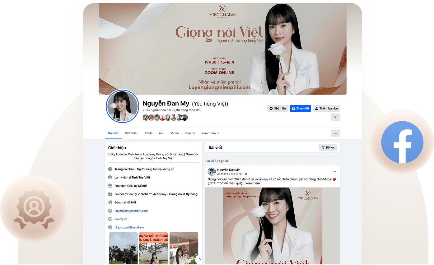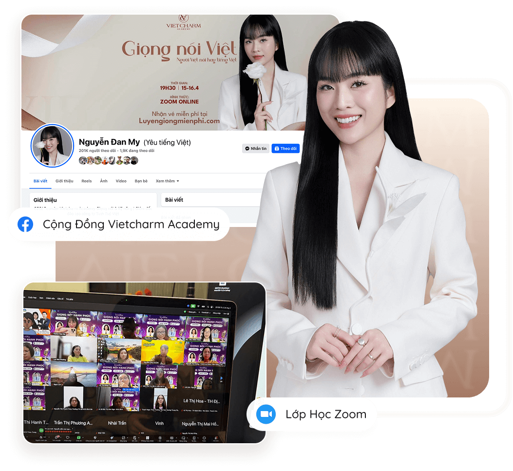 Nguyễn Đan My - CEO Vietcharm Academy - Huấn luyện viên giọng nói & kỹ năng truyền cảm hứng. Tác giả & Nhà sáng tạo nội dung với hơn 700.000 người theo dõi đa nền tảng. Kinh nghiệm đứng lớp với hơn 10.000 học viên tham dự các chương trình.