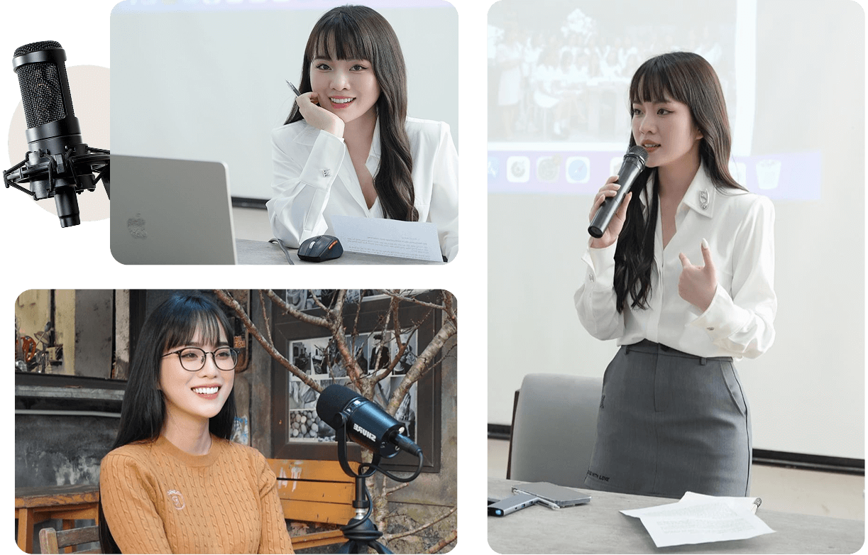 Nguyễn Đan My - CEO Vietcharm Academy - Huấn luyện viên giọng nói & kỹ năng truyền cảm hứng. Tác giả & Nhà sáng tạo nội dung với hơn 700.000 người theo dõi đa nền tảng. Kinh nghiệm đứng lớp với hơn 10.000 học viên tham dự các chương trình.